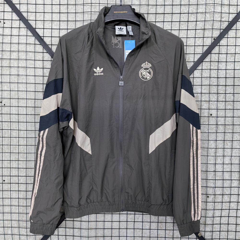 Real Madrid retro football windbreaker-gray
